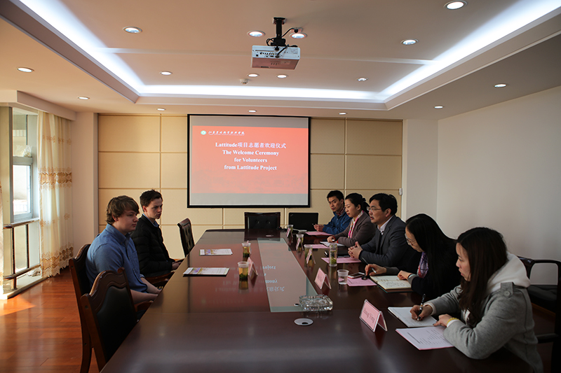 曹仁勇副院长对两名志愿者——澳大利亚的朗弛兰(TUNBRIDGE LACHLAN PETER)和加拿大的艾瑞克(SHATOSKY ERIC CLARKE)的到来表示热烈欢迎,并向他们介绍了学院的基本概况和乐助(Lattitude)项目历年的合作情况。他希望在今后的合作中,志愿者能为学院广大师生在提高英语听说能力方面提供更多的支持和帮助,增进双方语言和文化的交流。