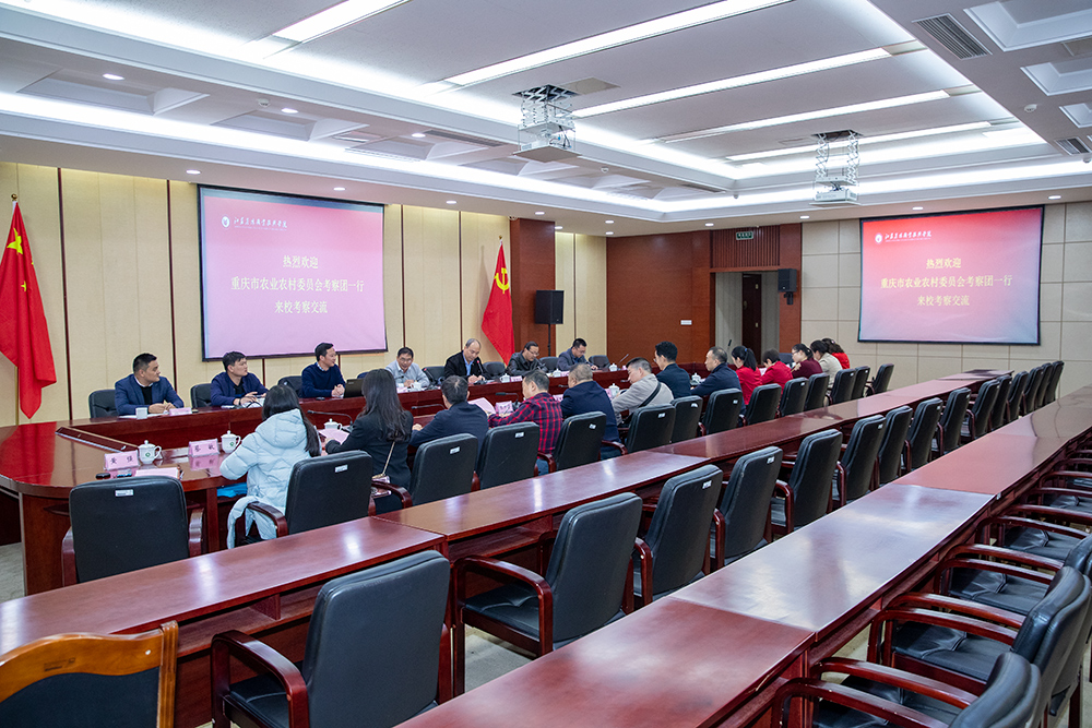 周兴元代表学院向重庆市农业农村委考察团一行表示欢迎,介绍了学校服务区域农业农村发展的“三张名片”,介绍了学院在秉持“三农”办学特色、农业科技创新、社会服务等方面经验和做法。继续教育学院就来访交流内容做了专题交流。