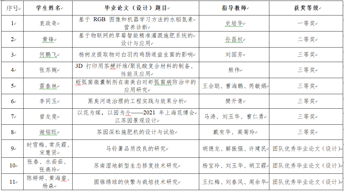 我院2020年江苏省普通高等学校本专科优秀毕业设计(论文)获奖名单