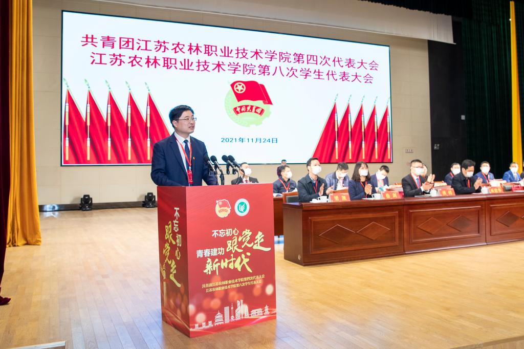 学院团委书记董慧同志代表共青团江苏农林职业技术学院第三届委员会作《舵稳当奋楫 风劲好扬帆 为奋力建设“国内一流、特色鲜明”的高水平应用型技术大学贡献青春力量》工作报告。江苏科技大学团委、学院妇联分别代表兄弟院校和群团组织致贺词。会议还听取了胡钰琦同学代表学院学生会第七届委员会作的《回首往昔展望未来为谱写我院学生会工作青春壮丽新篇章作出磅礴的力量》工作报告。