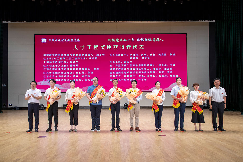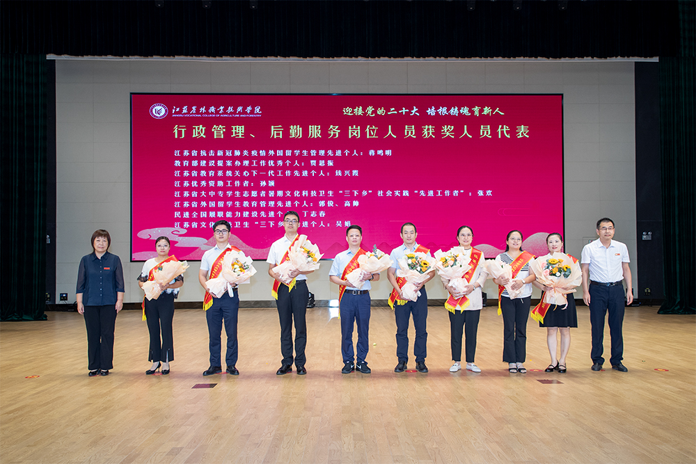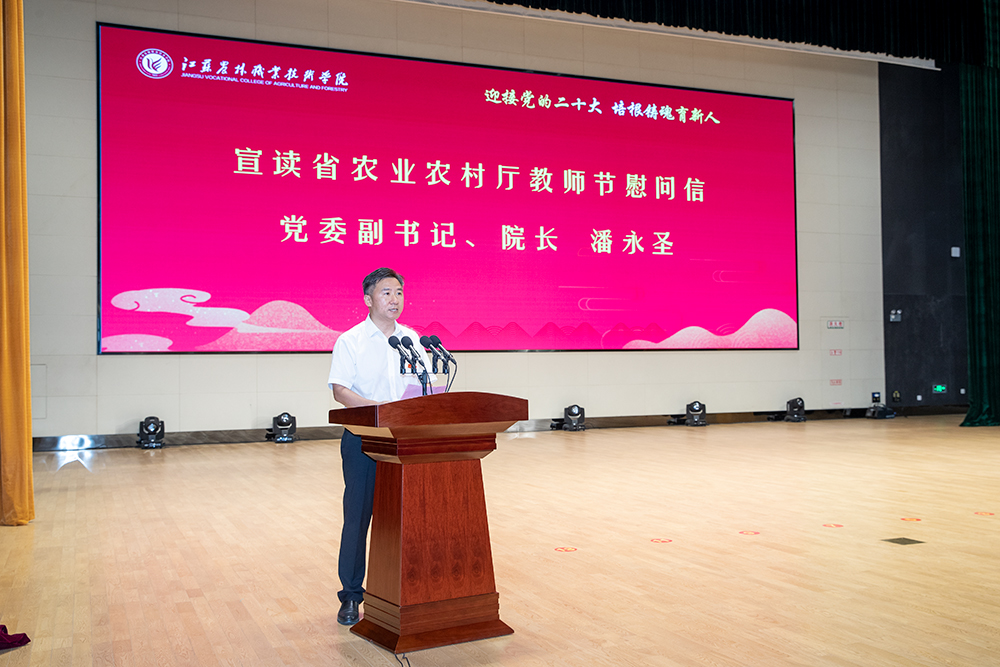 党委副书记、院长潘永圣宣读了江苏省农业农村厅发来的教师节慰问信,并向全体教职员工送上节日祝福。会上,院领导为近两年人才工程奖项获得者代表、教育教学领域省级以上重要获奖人员代表、科技工作表现优秀人员代表、行政管理后勤服务岗位人员获得表彰人员代表和抗击疫情保安全人员代表送上鲜花,并为荣休教师颁发荣誉证书。获奖教师代表高菊玲、荣休教师代表陈啸寅、新教师代表郑香容作了发言。