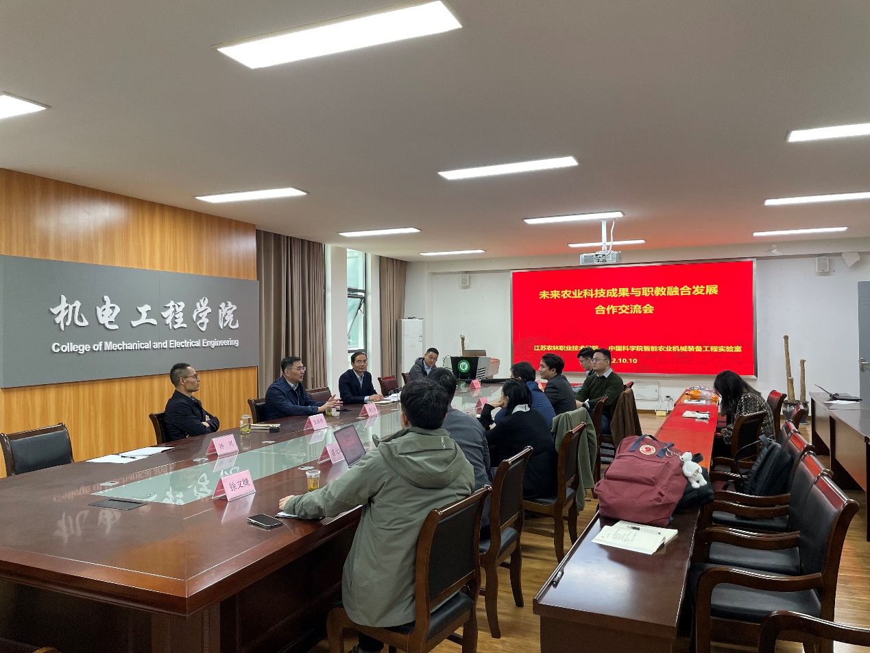 2022年10月10日,中国科学院智能农业机械装备工程实验室主任张玉成一行来我院就“未来农业科技成果与职教融合发展路径探索”问题进行洽谈、交流。学院党委副书记曹仁勇、机电工程学院院长刘永华、党总支书记张田林、副院长高菊玲及有关教师参加本次活动。