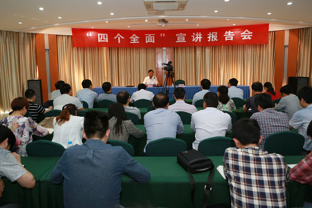 报告会上,徐山瀑同志从“四个全面”战略布局,即全面建成小康社会、全面深化改革、全面依法治国、全面从严治党的历史起点、深刻内涵、战略意义等方面进行了系统深入、生动具体地分析解读。同时还结合江苏实际,介绍了江苏省贯彻“四个全面”战略布局的一系列举措和取得的成果。