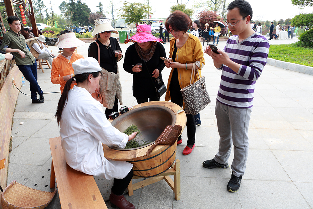 为普及茶知识、弘扬茶文化,倡导“茶为国饮”,号召“全民饮茶”,4月18日,江苏茶博园举办了2015“印象茶博园 全民饮茶日”活动。近千名观众现场品名茶,观茶艺,感受传统茶文化的独特魅力。 活动以“印象茶博园 品味生活”为主题,举行了“茶香满中国”品茶会、“说茶道·品茗香”茶艺表演、“印象茶博园”文艺演出、“制茶初体验”手工制茶展演、“挥出精彩·阳光生活”茶情高尔夫体验、“寻找印象茶博园”素质拓展等系列活动。众多爱茶者在现场品名茶、观茶艺、答茶疑,闻茶香,充分感受了传统茶文化的独特魅力。 本次活动为江苏茶博园举办的第三届“印象茶博园全民饮茶日”活动,吸引了来自上海、苏州、南京等地游客数千人。