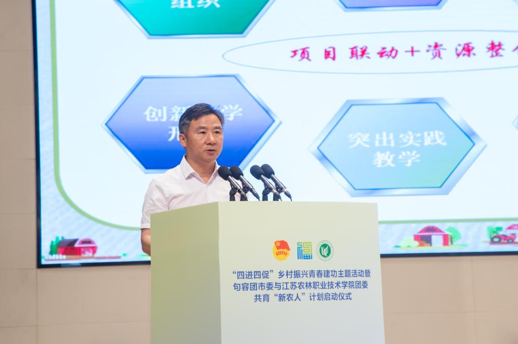 为贯彻落实习近平总书记殷殷嘱托和党中央的决策部署,认真落实团十九大精神,6月26日,由共青团江苏省委员会、江苏省农业农村厅指导,共青团镇江市委员会、共青团江苏农林职业技术学院委员会、共青团句容市委员会共同主办的“四进四促”乡村振兴青春建功主题活动暨句容团市委与江苏农林职业技术学院团委共育“新农人”计划启动仪式在我院举行。