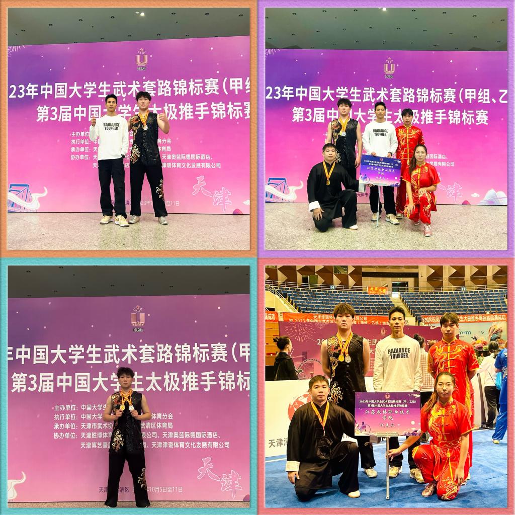 10月5日—11日,由中国大学生体育协会主办、天津武术协会承办的2023年中国大学生武术套路锦标赛在天津隆重举行。本届中国大学生武术套路锦标赛是历年来规模最大、社会影响力最广的全国大学生武术赛事,共有来自全国各省市高校230多支代表队,1500多名运动员参赛。我院首次组队参加本次武术大赛。