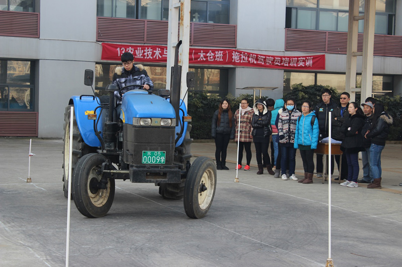 12月1日以来,按照13农业技术与管理(太仓)班人才培养方案和江苏省拖拉机驾驶员考评要求,我系联合太仓市农业委员会对2013级太仓班同学进行了为期半个月的农机驾驶培训。15日上午,由太仓市农机监理所按照江苏省农机驾驶员职业岗位要求对学生的驾驶技术进行了认真考评。经考评,全班符合条件的53名同学均获得太仓市农机检测部门颁发的拖拉机驾驶执照。