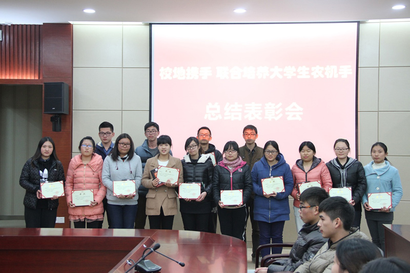12月15日下午,“校地携手 联合培养大学生农机手”总结表彰会议在综合楼9楼会议室隆重召开。学院副院长周兴元、太仓市农机监理所钱强书记、太仓市农机推广站曹伟清站长、教务处、农学园艺系和2013级农业技术与管理(太仓)班全体同学参加了此次会议。会议由农学园艺系杨宝林副主任主持。