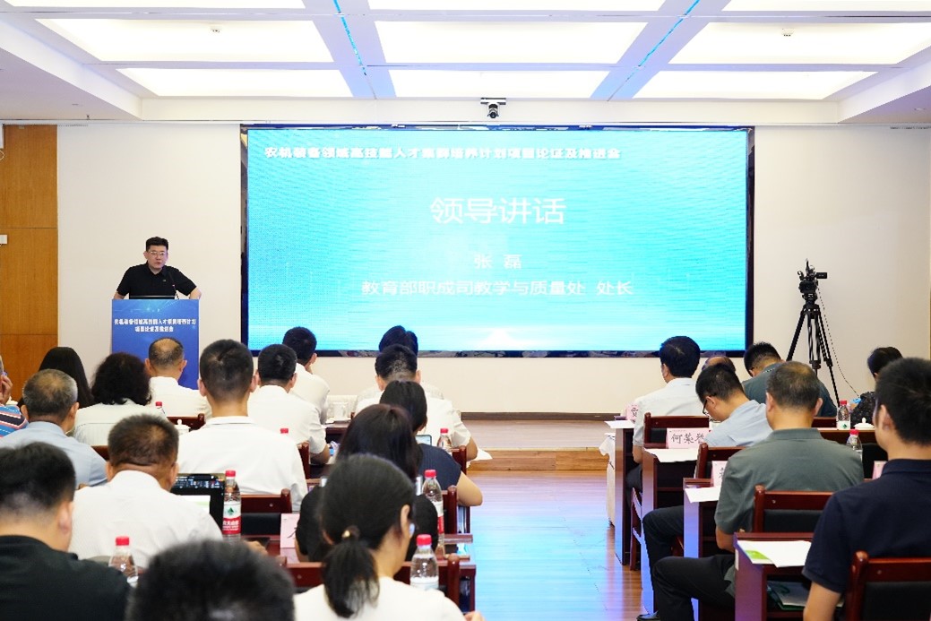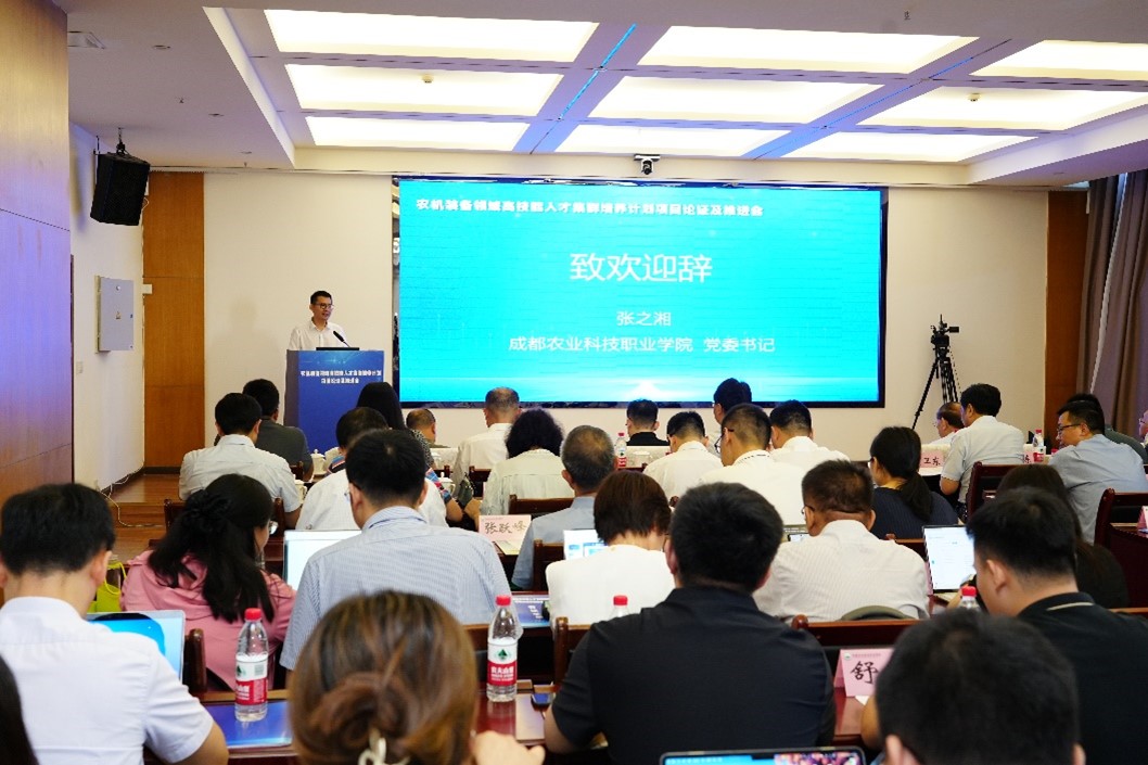 会议分三个阶段进行,第一阶段为农机装备领域高技能人才集群培养计划项目论证会,会议由农业农村部农业机械化总站原副站长徐振兴主持。成都农业科技职业学院党委书记张之湘致欢迎辞,学院党委书记简祖平代表农机装备领域三组长致辞,并对参与本次论证会议的各位专家表示感谢。教育部职业教育与成人教育司教学与质量处处长张磊莅临会场并讲话。