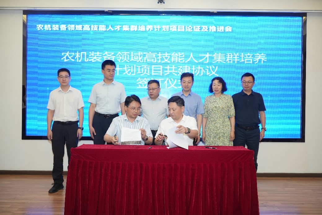 推进会上,简祖平与各参建单位校领导签订了农机装备领域高技能人才集群培养计划项目共建协议,各参建学校将严格按照工作要求,落实各项改革任务,为后续工作的深入开展奠定基础。