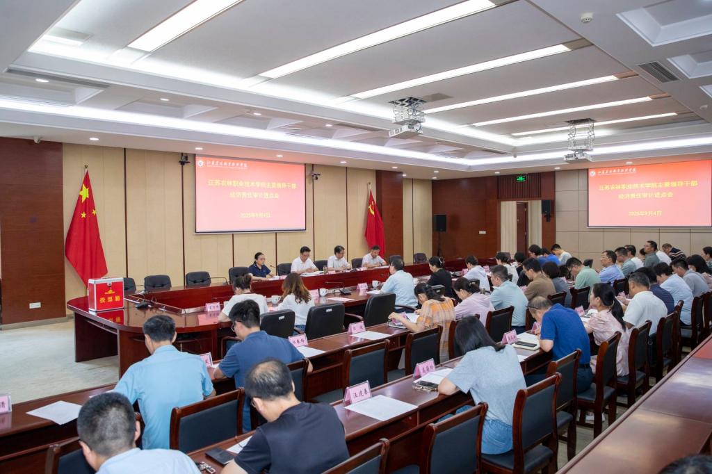 根据江苏省审计厅工作安排,9月4日下午,江苏农林职业技术学院主要领导干部经济责任审计进点会议在综合楼九楼会议室召开。审计组组长、镇江市审计局党组成员、副局长史宏,审计组成员、镇江市审计局农业处处长刘晖,学院党委书记简祖平等出席会议,党委副书记、院长潘永圣主持会议。
