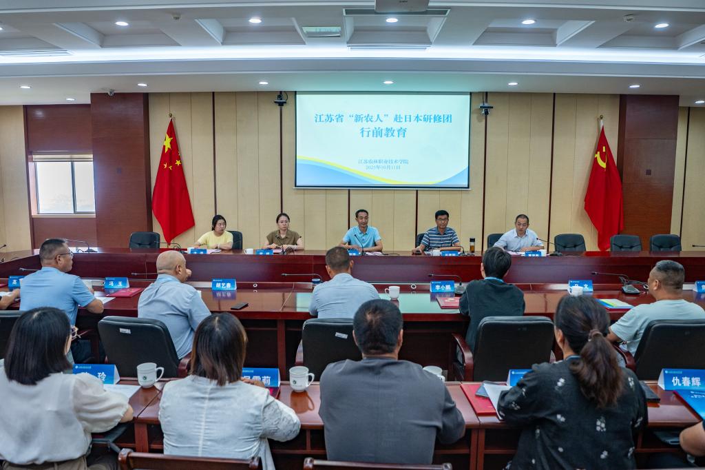10月11日,由江苏省农业农村厅主办、我院承办的“2025年江苏省‘新农人’赴日本研修活动”启动仪式在我院顺利举行。省农业农村厅副厅长朱新华,省农业农村厅科技教育处处长葛自强,学院党委副书记、院长潘永圣出席启动仪式。来自全省13个地(市)的19名优秀“新农人”代表参加本次活动。