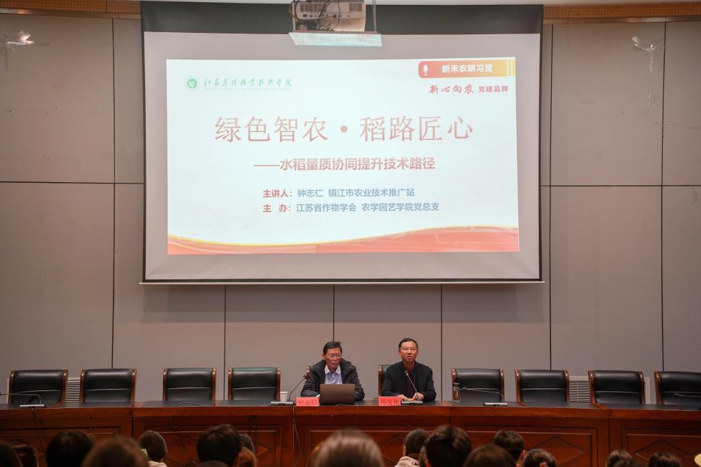 会前,钟志仁在研发楼报告厅为23级农学园艺学院学生作“绿色智农稻路匠心——水稻量质协同提升技术路径”讲座,指出产量与品质协同提升是水稻产业高质量发展核心路径。