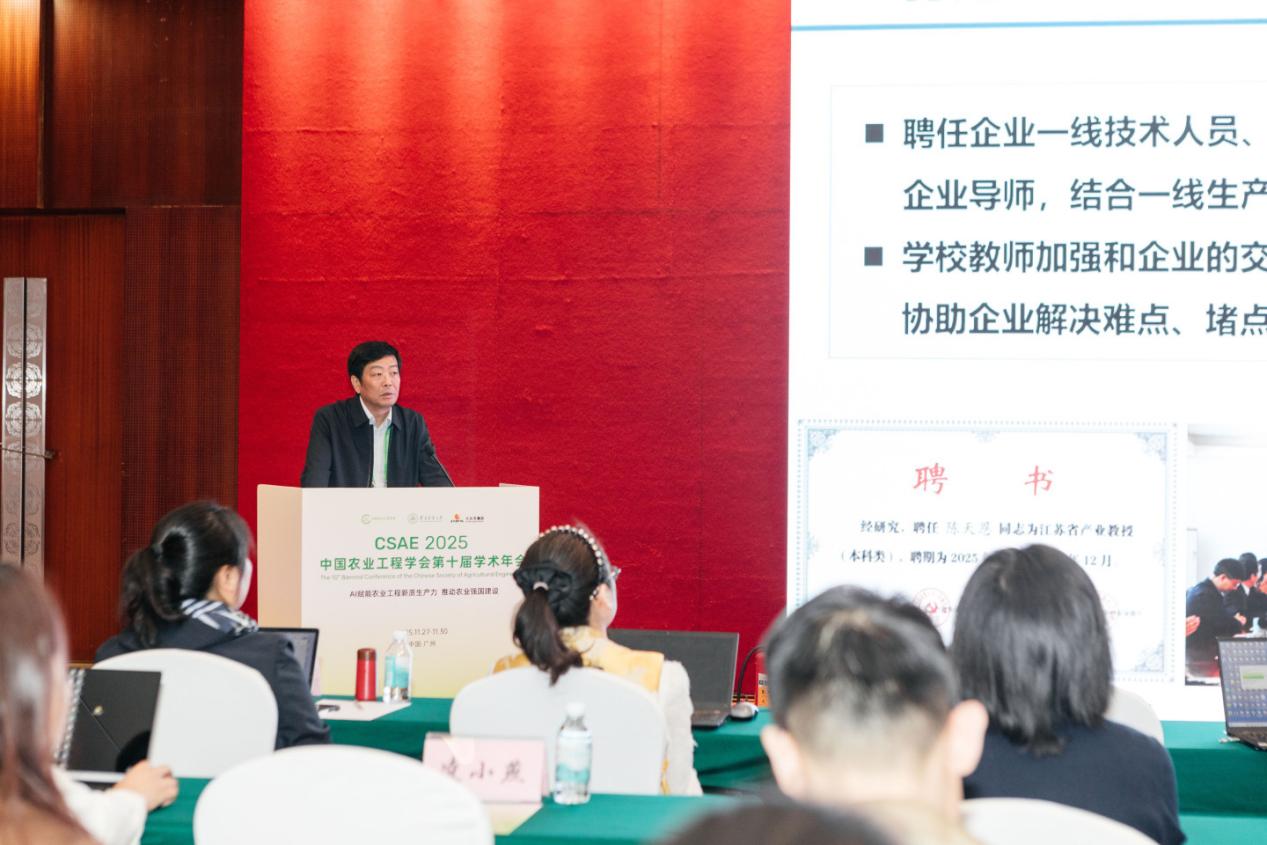 罗锡文院士以《农机装备产业转型升级与高技能人才培养》为题,围绕农机装备产业的发展趋势进行阐释,并就高技能人才培养问题提出思考。他强调,无人农场等现代农业新兴领域的快速发展,离不开专业人才的坚实支撑。面对农机装备产业向高端化、智能化、绿色化转型的新态势,职业教育必须紧跟产业发展节奏,精准对接产业需求,为现代农业培育出具备核心竞争力的“硬核”人才。