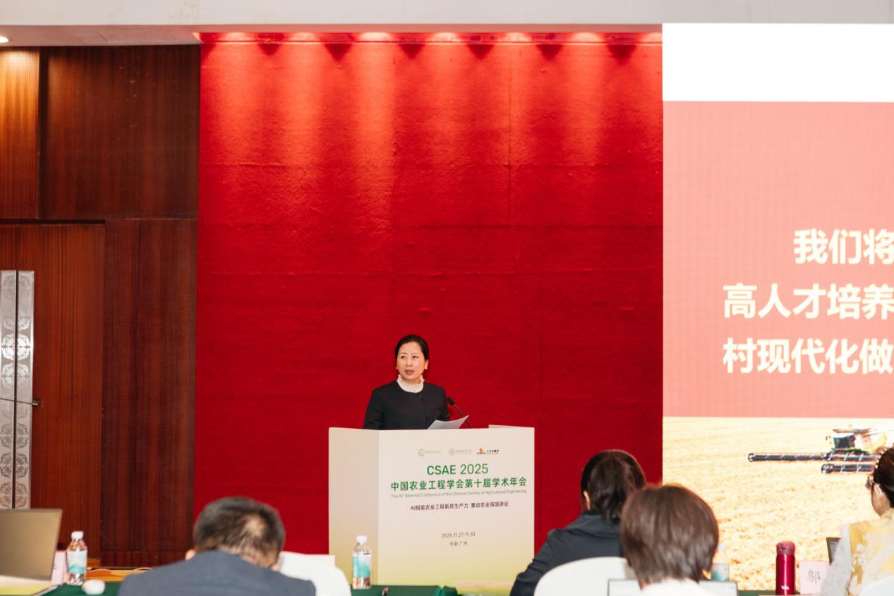 论坛分三个阶段进行,第一阶段主旨报告环节,由我院党委委员、副院长王瑾主持,中国工程院院士、华南农业大学罗锡文教授与高校领军学者立足农业强国建设战略分享前沿思考。