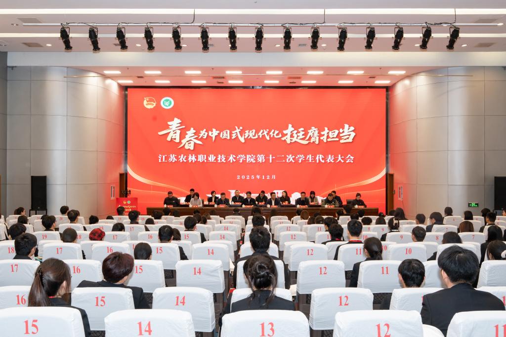12月23日,江苏农林职业技术学院第十二次学生代表大会在图书馆报告厅胜利召开。学院党委书记简祖平,共青团镇江市委副书记丁国睿,学院党委委员、副院长毕德全,学院党委委员、宣传部部长梁凯,句容市委学少部部长葛扬,相关职能部门负责人、各二级学院(校区)党总支书记、副书记,团委书记及驻镇高校学生会主席应邀出席开幕式,125名学生代表参加大会。开幕式由毕德全主持。