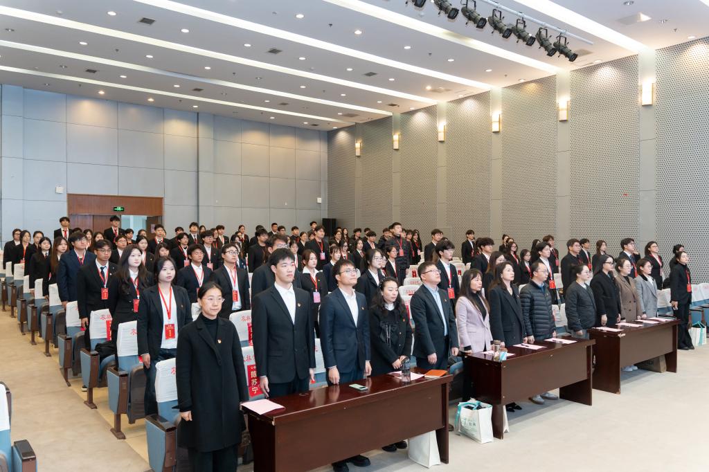 大会在庄严的国歌声中拉开帷幕。丁国睿在致辞中充分肯定了我院团学工作取得的扎实成绩,并对学生会组织提出三点希望:强化担当,在服务同学中提升组织力;推动团学工作创新发展,在校地融合中增强贡献度;激励广大青年学子奋发有为,在时代征程中实现人生价值。