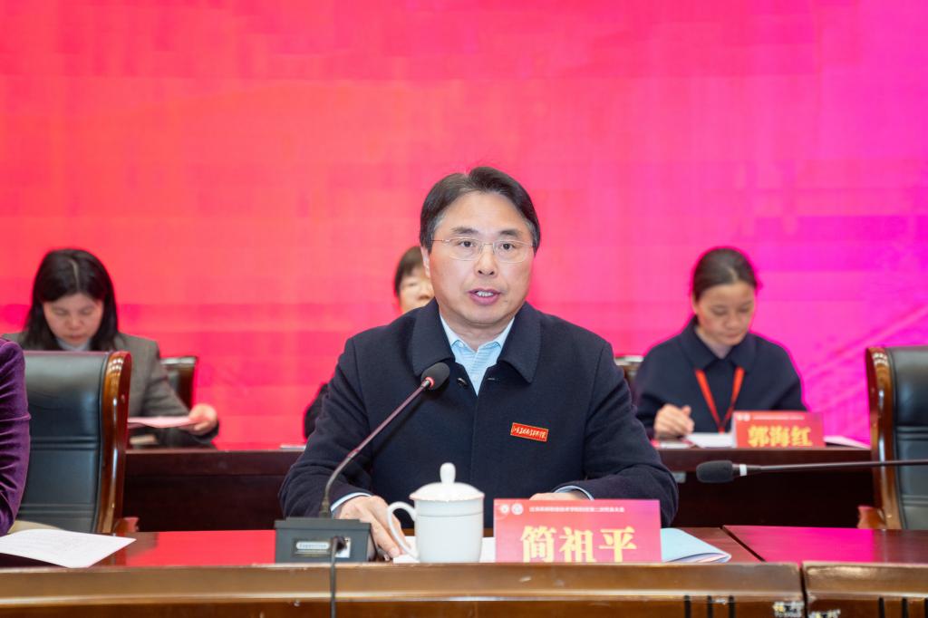 简祖平代表学院党委、行政向大会表示热烈祝贺!向出席大会的全体代表,向全院女教职工致以亲切的问候和美好的祝愿!简祖平在讲话中充分肯定了五年来妇联工作取得的成绩,对今后妇女工作提出了四点希望:第一,希望大家坚定理想信念,做对党忠诚的“追梦人”;第二,希望大家勇于担当作为,做干事创业的“排头兵”;第三,希望大家发挥独特作用,做弘扬新风的“践行者”;第四,希望大家强化履职服务,在凝心聚力中建好“妇女之家”。