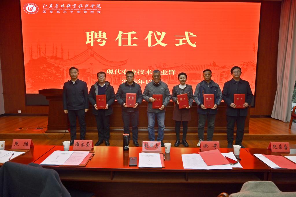 大会举行了现代农业技术专业群课程开发中心和教材建设委员会组长和委员聘任仪式、潘永圣为专家颁发聘书。