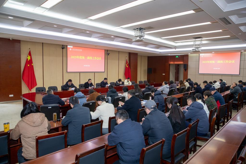 12月31日下午,学院在综合楼九楼会议室组织召开2025年度统战工作会议。相关校领导、各民主党派、无党派人士及知联会成员,党委统战部、党委宣传部、党委组织部、学生工作处、团委、安全保卫处、国际教育学院、人文社会科学处等部门负责同志,各二级党组织书记、统战委员参加会议。会议由党委组织部(统战部)副部长王涛主持。