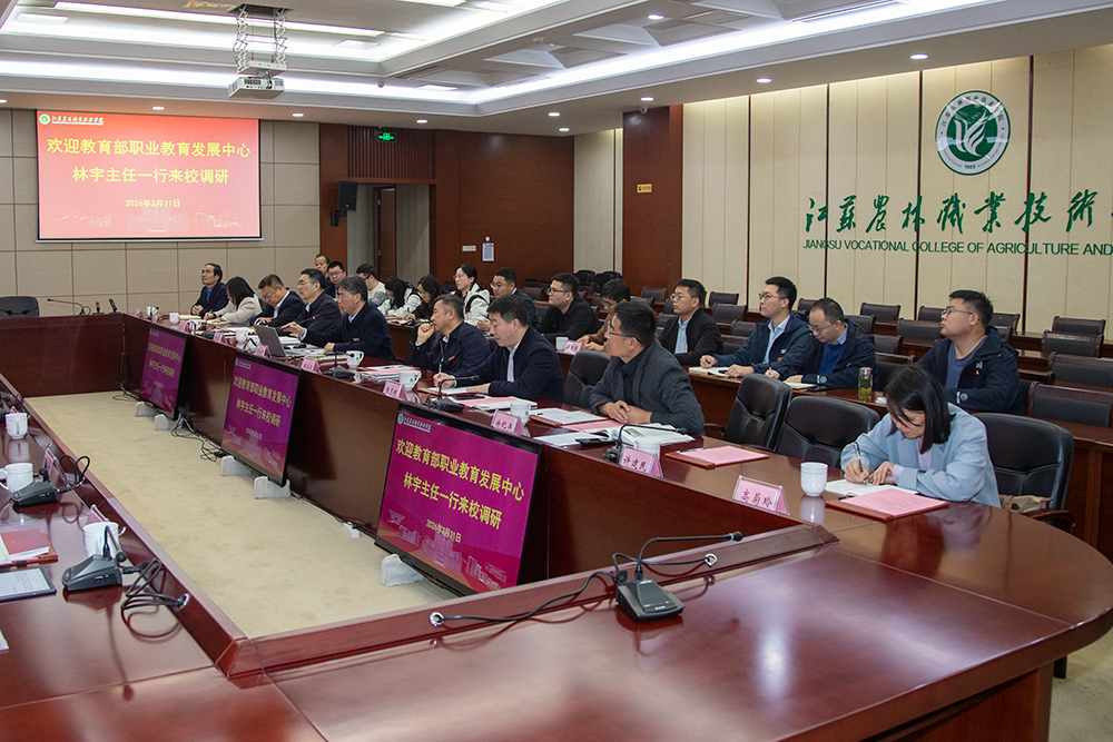 3月31日,教育部职业教育发展中心主任林宇带队来我校调研农机装备领域高技能人才集群培养计划项目实施工作。省教育厅职业教育处处长马万全、二级调研员魏永军,学校党委书记简祖平,党委副书记、校长潘永圣,党委副书记曹仁勇,党委委员、副校长颜志明等陪同调研。