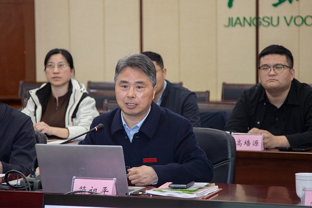 座谈会上,简祖平代表学校对调研组到访表示热烈欢迎,并介绍了学校办学历史、发展成就以及农机装备领域高技能人才集群培养项目实施情况。他表示,学校聚焦农机装备领域高技能人才需求,整合政行企校资源,构建了农机装备高技能人才培育新生态,有力服务了江苏农业现代化和农机装备产业转型升级。