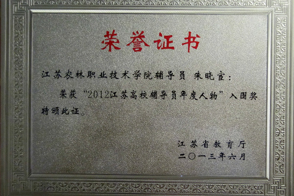 日前,“2012江苏高校辅导员年度人物”评选结果揭晓,我院辅导员朱晓宦老师喜获“2012江苏高校辅导员年度人物”入围奖。这是我院在辅导员队伍建设中取得的又一个零的突破,也体现了我院辅导员队伍建设成效凸显。