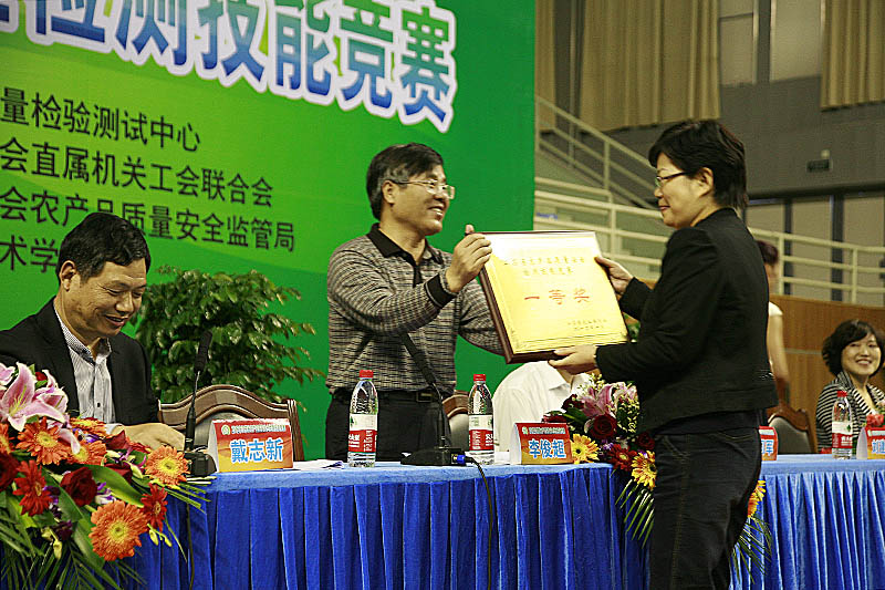 经过两天的紧张的理论知识考试和操作技能考核,“江苏省农产品质量安全检测技能竞赛”赛事已经圆满结束。10月16日下午5:00,本届大赛圆满落下帷幕。大赛共决出 “江苏省五一创新能手”、“江苏省技术能手”各6名;“优秀检测员”15名;盐城代表队等9个单位荣获优秀团体奖。