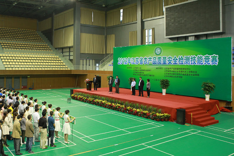 2012年江苏省农产品质量安全检测技能竞赛于10月15-16日在我院成功举行。16日上午九点,大赛开赛式在学院体育馆隆重举行。农业部农产品质量安全监管局局长马爱国等农业部和江苏省有关领导出席了开赛式。开赛式由江苏省农业委员会副巡视员戴志新主持。