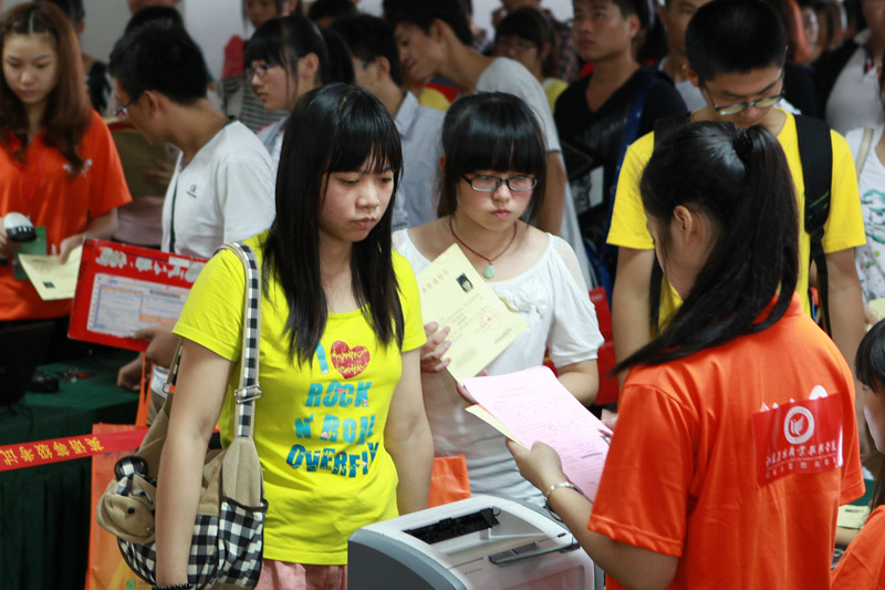 迎新志愿者为新生注册学籍