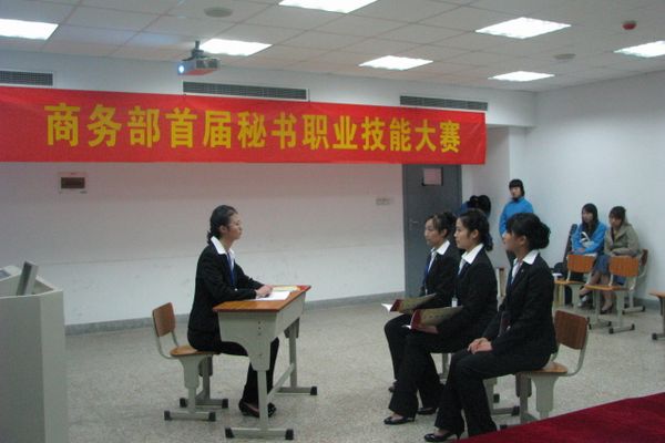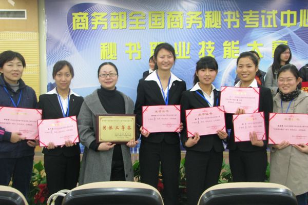 12月4日、5日,我院社艺系文秘专业4名学生参加了由商务部全国商务秘书考试中心主办、南京城市职业技术学院承办的首届秘书职业技能大赛。经过理论测试、写作测试、书法测试、个人及团体才艺展示五环节的激烈角逐,我专业代表队喜创佳绩,共获九项大奖:团体二等奖,个人一等奖两项、二等奖一项、三等奖两项,优秀指导教师奖三项。其中,魏倩获个人职业能力一等奖,朱叶茹获个人职业能力二等奖,张玉获书法一等奖、个人职业能力三等奖,邵明宣获个人职业能力三等奖,孔祥静、邰沛沛、张丹黎三位老师获优秀指导教师奖。