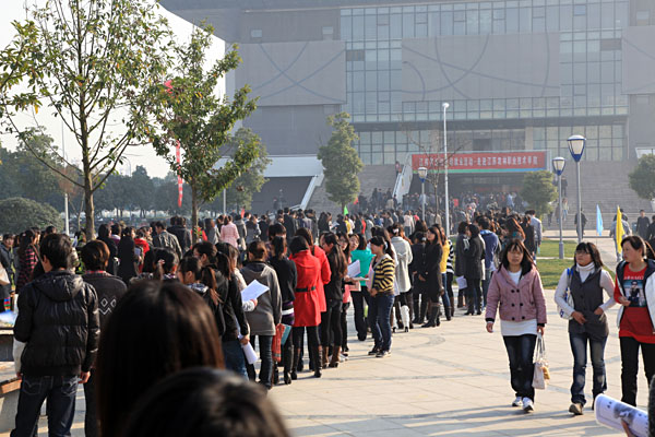 学生有序排队进入招聘会现场