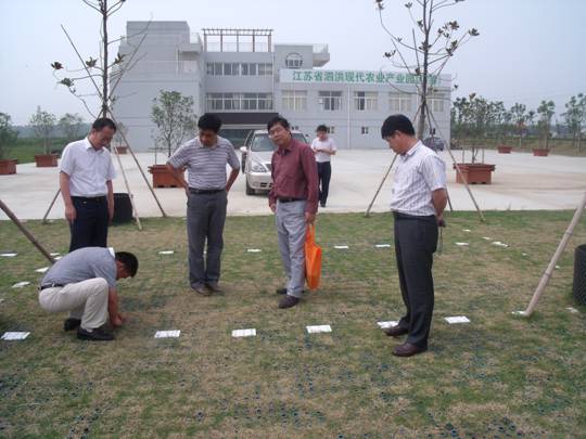 7月25日,在俞禄生副院长的带领下,我院挂县强农富民工程苏北工作组一行在泗洪县农林局相关负责人的陪同下,来到我院泗洪县挂县强农富民工程“一村一品”特色专业村检查项目进展情况。