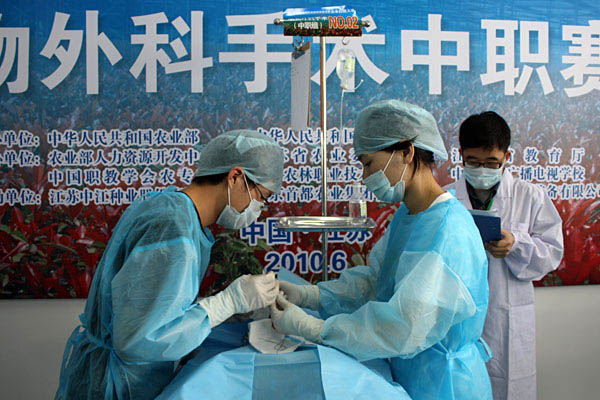 6月12日上午8:00,2010年全国职业院校农业技能大赛动物外科手术比赛在我院研发楼4楼成功举行。