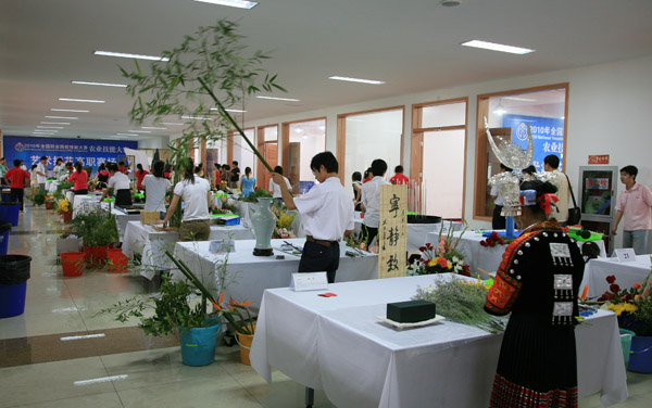 6月12日上午10:20,全国职业院校技能大赛艺术插花大赛在我院体育馆进行。比赛分高职、中专两组进行。选手们用精巧的艺术构思和对花卉的独特理解,诠释出时代的主题。