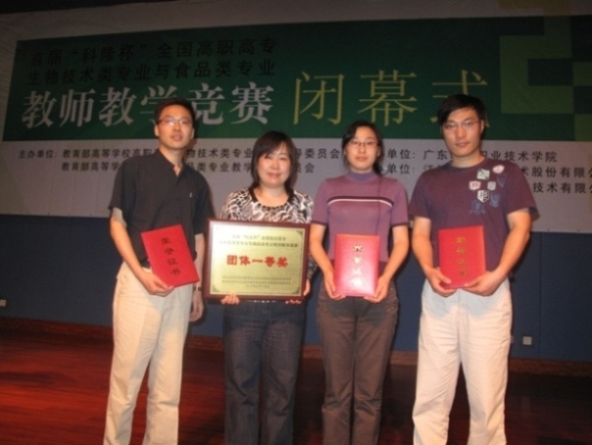 本次竞赛以“说课”为竞赛内容,竞赛按工艺类课程、检验类课程和基础类课程等分组进行。生物工程系宋刚、张雪松、张小华三位教师经过赛前的精心准备,在决赛中表现出色,以总分第一的成绩获得团体一等奖。宋刚老师获个人一等奖和创新奖,张雪松和张小华两位老师获二等奖。此次竞赛为生物技术、食品类专业教师提供了学习、交流和展示平台,同时促进我院与其他院校间交流与协作。