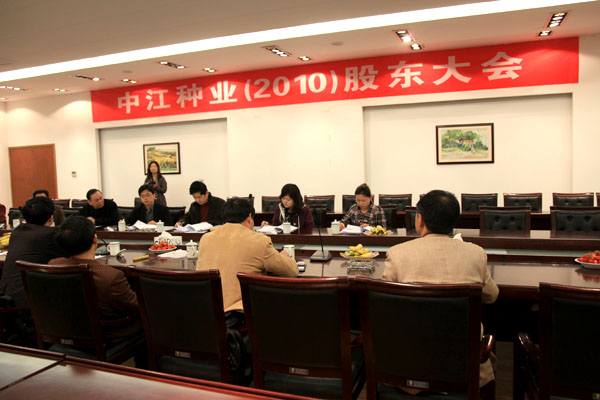 4月21日上午,江苏中江种业股份有限公司2010年第一次股东大会在北校区中层干部会议室召开,会议由公司控股股东——我院资产经营有限公司法定代表人黄焱院长主持,学院党委朱洪生书记出席股东大会。