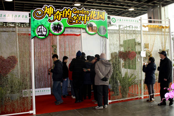 在我院名为“神奇的空中花园”展厅内,大片绿色的松萝窗帘和生机勃勃绿意盎然的植物壁画不但吸引了众多市民的目光,也获得了年宵花卉评委们的一致首肯。