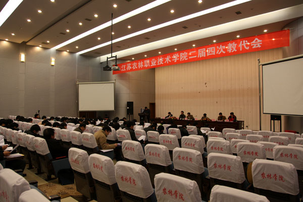 2010年1月25日上午,江苏农林职业技术学院二届四次教代会在图书馆报告厅隆重召开。会议由党委王润贤副书记主持,院领导班子、中层干部以及教代会代表和列席代表参加会议。