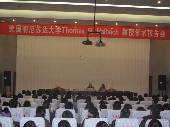 2009年11月15日,美国明尼苏达大学Thomas R. Halbach教授访问我院,为我院师生作了一场题为“固体废物处理技术”的学术报告。报告会由农艺系主任王永平主持。全院300多名师生聆听了此次报告。