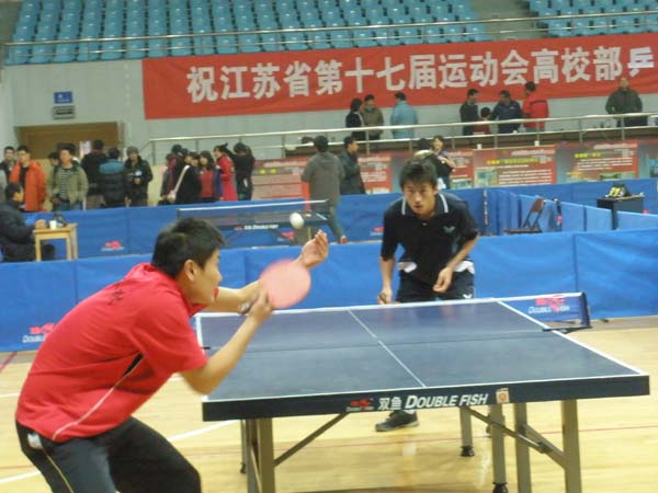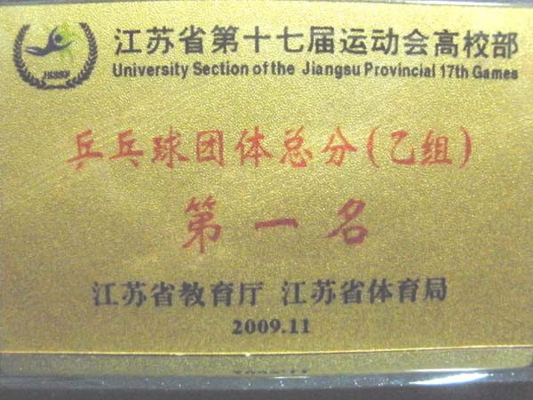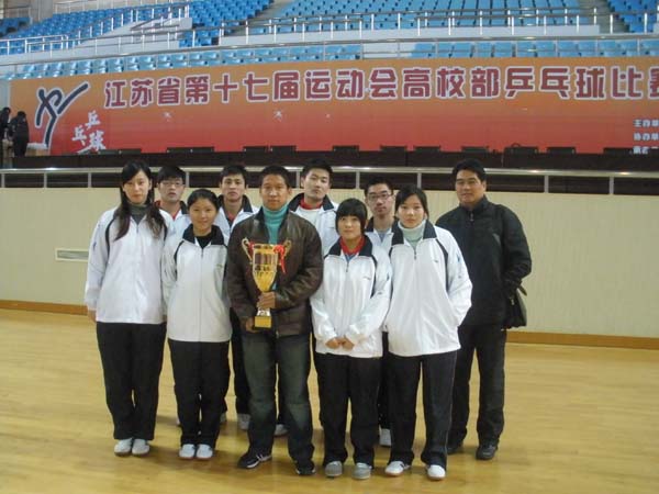 11月16日——22日,由江苏省教育厅、体育局主办第十七届省高校部乒乓球比赛在南京信息工程大学体育馆举行,经过七天紧张激烈的角逐,我院乒乓球队运动员以良好的赛风、精湛的球艺、顽强的拼搏精神,一路过关斩将,奋勇拼搏,最终在28所高职高专院校中获得团体总分第一,女子团体第一名、男子团体第四名,女子双打第一名,混合双打第三名,王昊获得男子单打第四名,刘惠、董丹分获女子单打第三和第五的好成绩。王昊、刘惠获得“体育道德风尚奖”,指导教练佐颜辉获得“优秀教练员”称号!