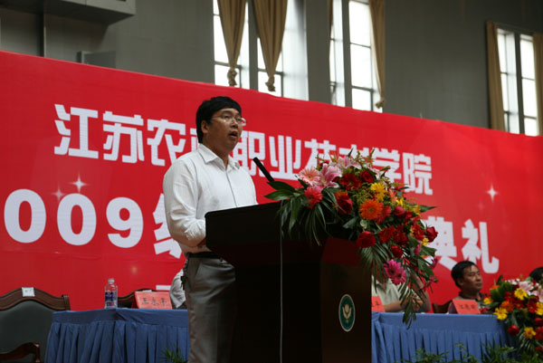 教师代表农艺系主任王永平研究员、生物工程系副主任贾君教授和在校生代表、新生代表分别在典礼上发言。