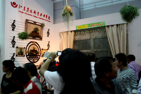 9月26日,第七届中国花卉博览会在北京隆重开幕。本届花博会历时10天,在北京和山东两地同时举行。我院的空气净化植物作为江苏花展的创新产品参加了此次博览会并获得骄人业绩:设计和布置的室内空气净化植物展区获大会金奖,空气凤梨植物窗帘、金毛狗组合盆栽获单项金奖。