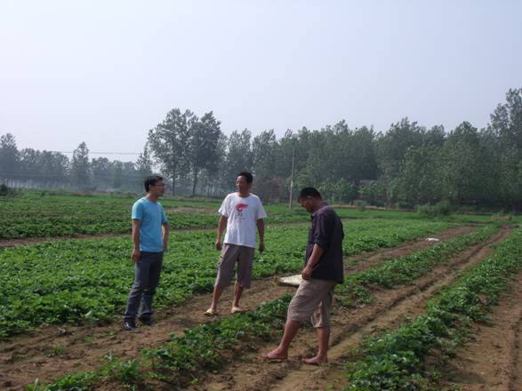 7、8月正值夏季高温、多雨季节,这是草莓繁苗管理最为关键的时期。为了确保魏营镇千亩草莓示范基地正常用苗,自7月份以来,王全智老师几乎每天都冒着酷暑奔走在农户和草莓繁苗田之间。他深入农户家中与农民交流草莓繁苗技术,了解农户草莓繁苗存在的问题,经常独自来到田间观察草莓生长及病虫害发生情况,为农户提出切实可行的管理技术和病虫害防治方法,为了进一步提早草莓上市时间,增加草莓经济效益,王全智老师向草莓种植大户传授了草莓假植及遮光处理技术,得到了草莓种植大户的一致认可。