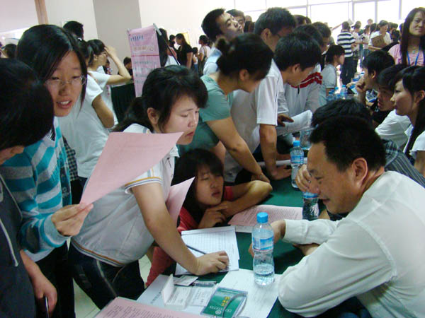 2009年,学院将促进大学生就业作为学生工作的首要任务来抓,高度重视、真切关怀。为了破解就业难题,扩展就业渠道,提高就业指导效果,学院学生工作处联合上述六系认真组织了这场“双选会”。招聘会上,前来应聘的学生积极地向用人单位投递简历,招聘现场人潮涌动,还有一些投完简历的同学纷纷在场外交流心得和经验。有学生表示,招聘方不仅注重求职者的专业知识,还注重学生的社会实践、交际能力、团队意识等方面的综合素质。