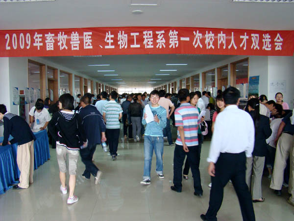 近日,畜牧兽医系、生物工程系、经济贸易系、机电工程系、信息工程系和社会科学与艺术系等六个系在校内成功举办了2009年第一次毕业生双选会。