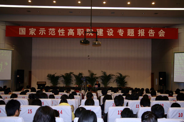 为了加快国家示范性高职院建设,深化科学发展观学习实践活动,3月27日上午,学院特邀全国高职高专校长联席会议主席、上海师范大学校长李进教授和上海市教科院职成教研究所所长、高职教育发展研究中心主任马树超研究员两位专家来院作国家示范性高职院建设专题报告。专题报告会在图书馆报告厅举行,院领导和全院教师听取了报告。