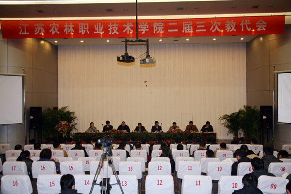 2009年1月16日上午,江苏农林职业技术学院二届三次教职工代表大会在图书馆报告厅隆重召开。会议由王润贤副书记主持,院领导班子、中层干部以及教代会代表出席了会议。