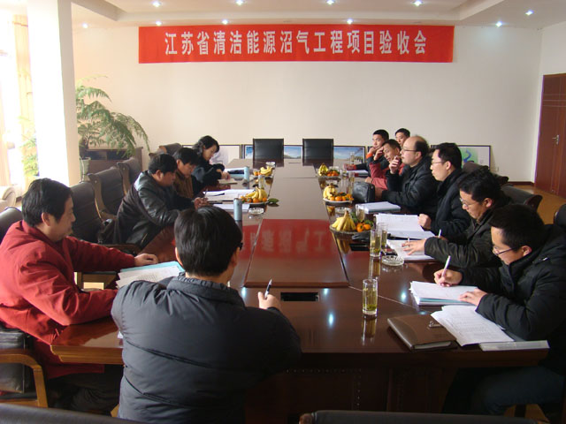 1月8日上午,江苏省小梅山猪育种中心Ⅴ类沼气工程和江苏农林职业技术学院实习牧场Ⅲ类沼气工程两个省级项目验收会议在我院举行。验收组听取了项目汇报,察看了工程现场及运行情况,审查了项目工作报告、技术报告及其它材料。验收组对项目的完成情况给予了高度的评价。验收组由镇江市农林局、财政局、句容市发展改革委员会和句容市财政局的专家组成。
