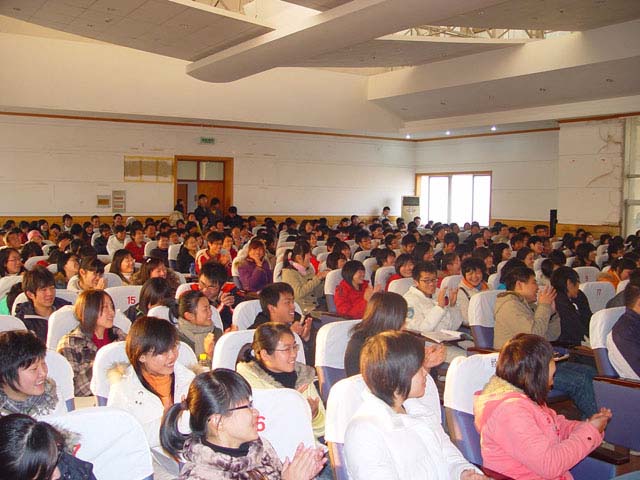 讲座伊始,赵教授用幽默风趣的语言调动了同学们的情绪,在热烈的氛围中他提出了三个值得大家深思的问题:什么是大学?我们来大学是干什么的?三年后我们将收获什么?接着,他又深入详细的分析了大学的四步棋,即:发现自我,优化人格,学习交往,职业准备。